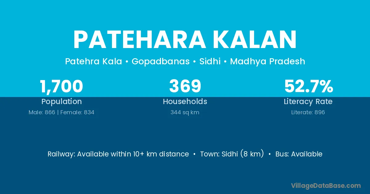 Sidhi (8 km) is the nearest town to Patehara Kalan village for major economic activities and is located approximately 8 km away.