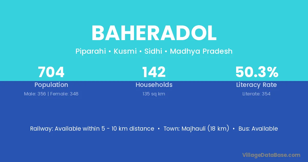 Majhauli (18 km) is the nearest town to Baheradol village for major economic activities and is located approximately 18 km away.