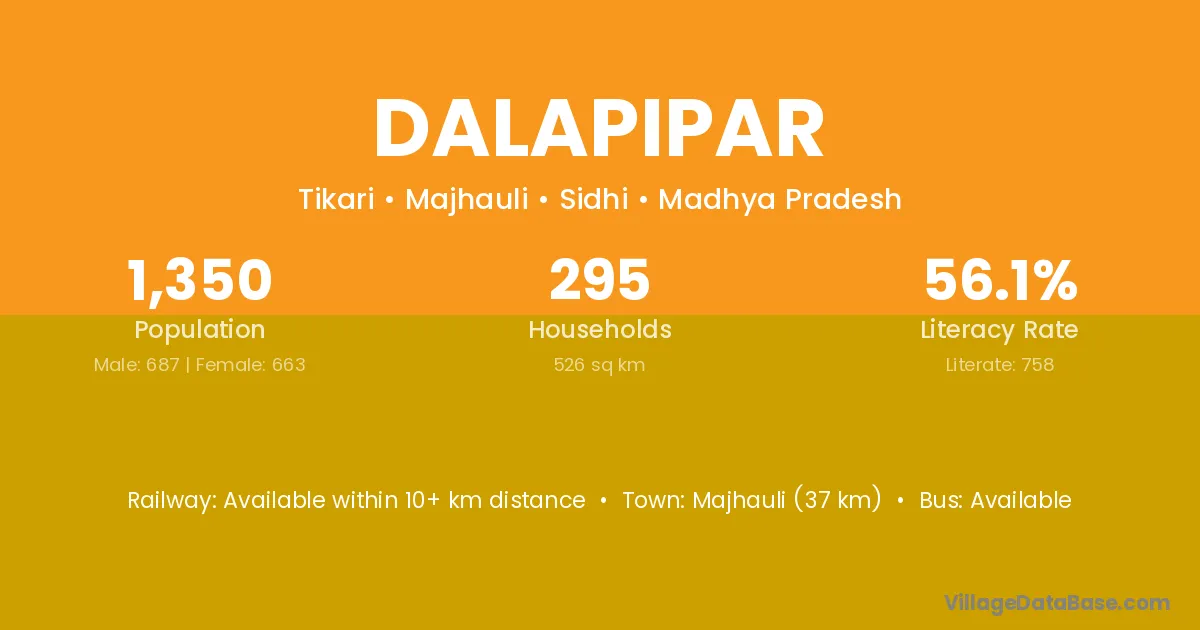 Majhauli (37 km) is the nearest town to Dalapipar village for major economic activities and is located approximately 37 km away.