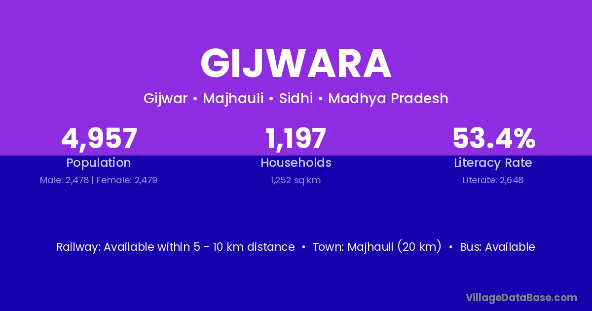 Majhauli (20 km) is the nearest town to Gijwara village for major economic activities and is located approximately 20 km away.