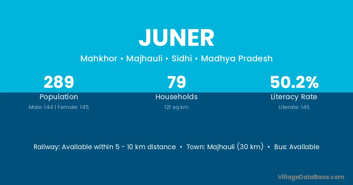 Majhauli (30 km) is the nearest town to Juner village for major economic activities and is located approximately 30 km away.