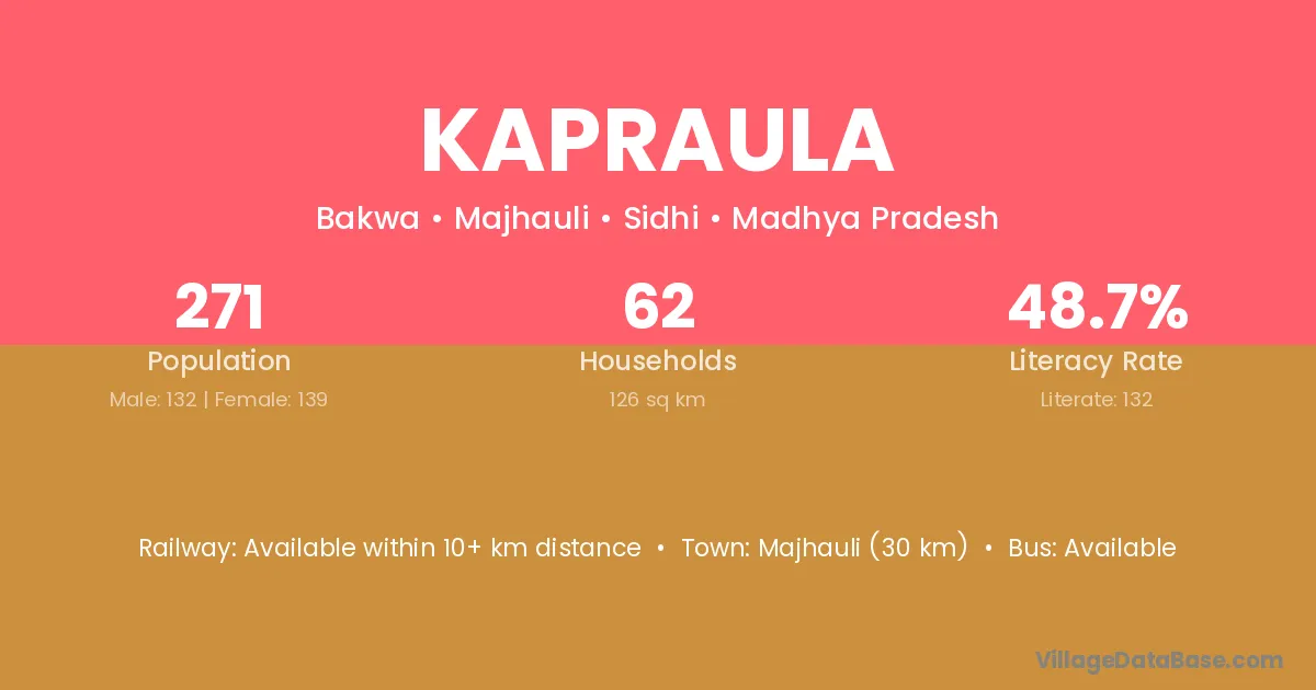 Majhauli (30 km) is the nearest town to Kapraula village for major economic activities and is located approximately 30 km away.