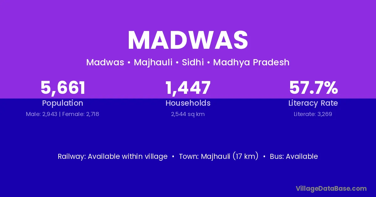 Majhauli (17 km) is the nearest town to Madwas village for major economic activities and is located approximately 17 km away.