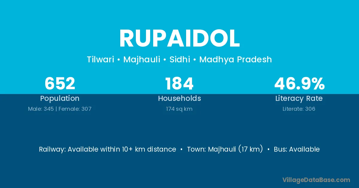 Majhauli (17 km) is the nearest town to Rupaidol village for major economic activities and is located approximately 17 km away.