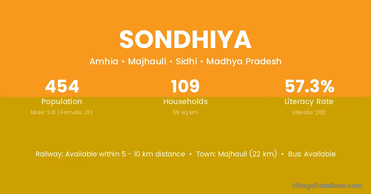 Majhauli (22 km) is the nearest town to Sondhiya village for major economic activities and is located approximately 22 km away.