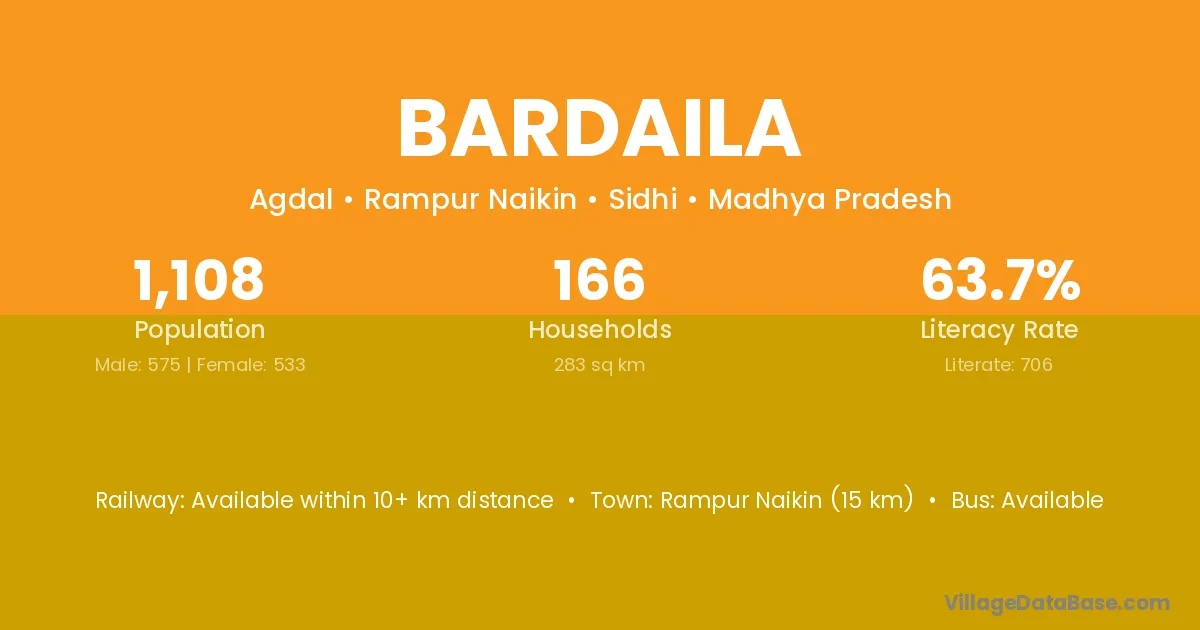 Rampur Naikin (15 km) is the nearest town to Bardaila village for major economic activities and is located approximately 15 km away.