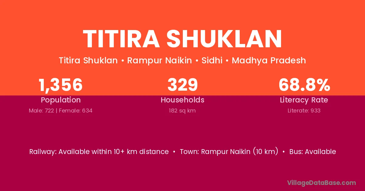 Titira Shuklan village has a total population of 1,356 people, of which 722 are males and 634 are females.