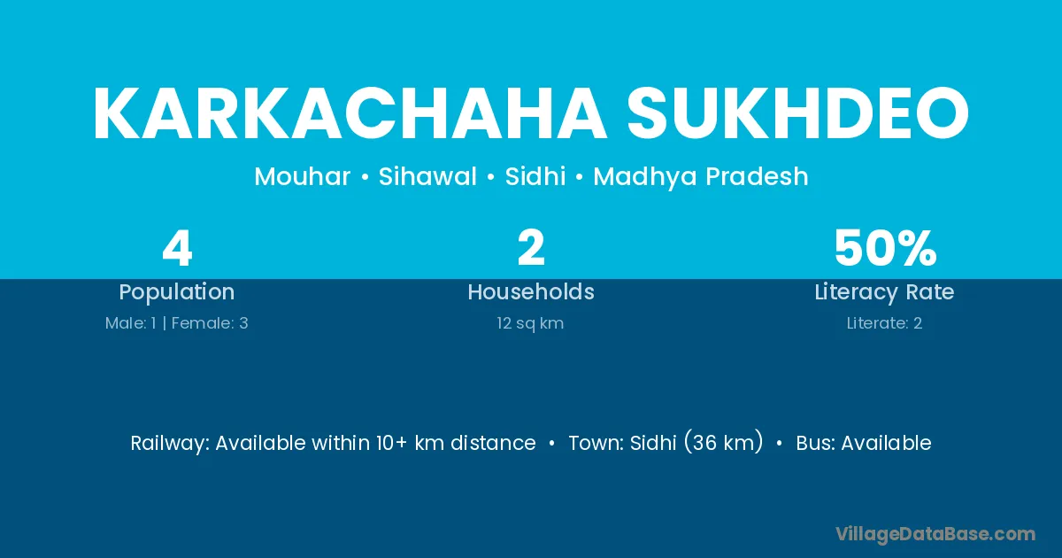 Karkachaha Sukhdeo village has a total population of 4 people, of which 1 are males and 3 are females.