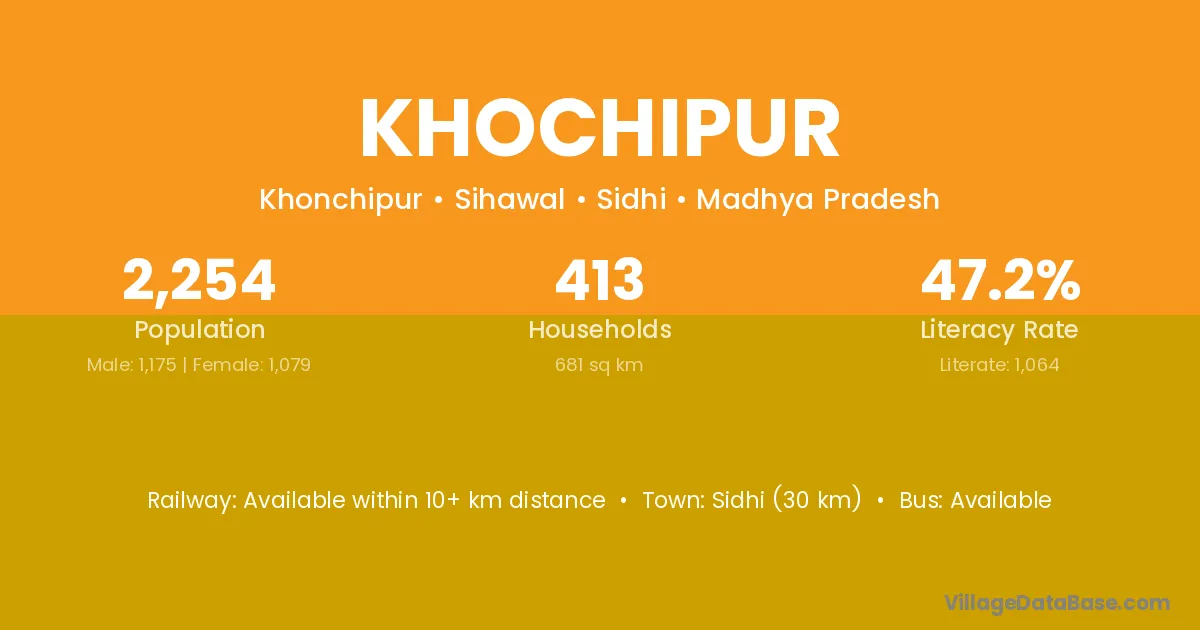 Sidhi (30 km) is the nearest town to Khochipur village for major economic activities and is located approximately 30 km away.