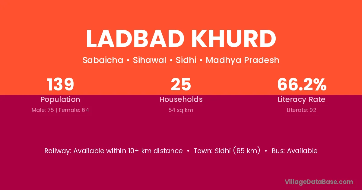 Ladbad Khurd village has a total population of 139 people, of which 75 are males and 64 are females.