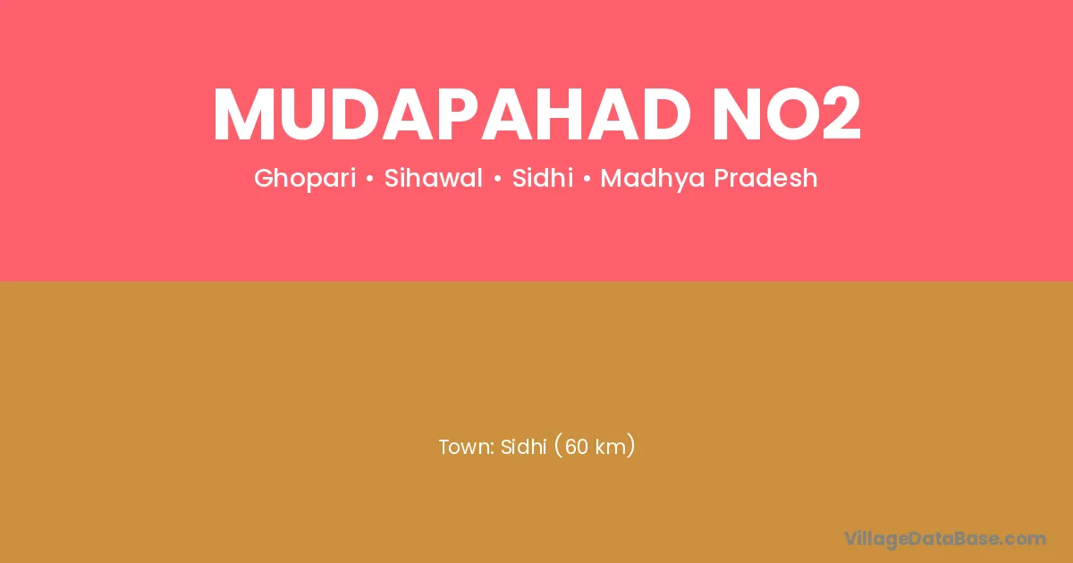 Sidhi (60 km) is the nearest town to Mudapahad No2 village for major economic activities and is located approximately 60 km away.