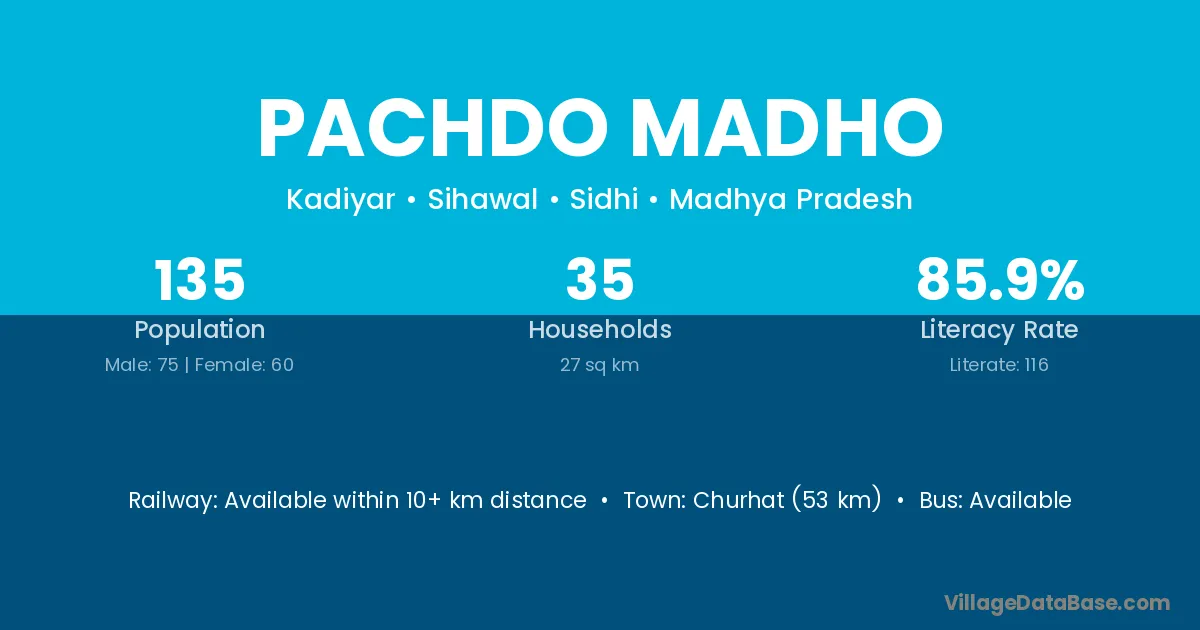 Pachdo Madho village has a total population of 135 people, of which 75 are males and 60 are females.