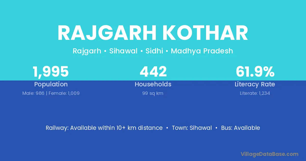 Rajgarh Kothar village has a total population of 1,995 people, of which 986 are males and 1,009 are females.