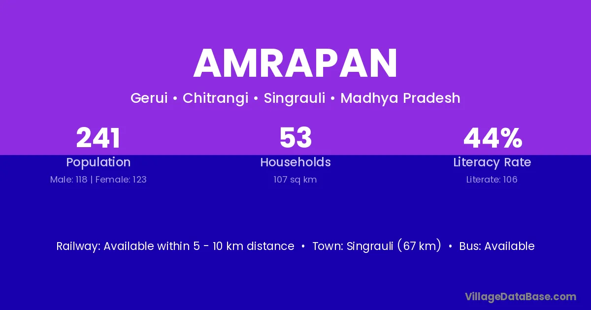 Amrapan village has a total population of 241 people, of which 118 are males and 123 are females.
