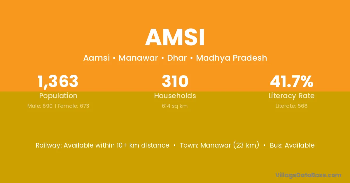 The literacy rate of Amsi village is 12.00%. Male literacy stands at 15.87% and female literacy at 8.06%.