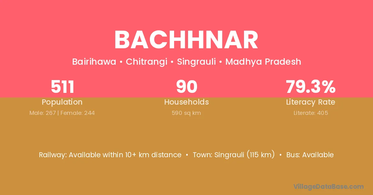 Bachhnar village has a total population of 511 people, of which 267 are males and 244 are females.