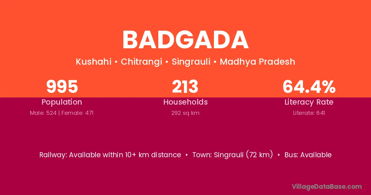Badgada village has a total population of 995 people, of which 524 are males and 471 are females.