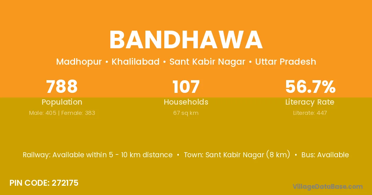 The literacy rate of Bandhawa village is 50.68%. Male literacy stands at 57.89% and female literacy at 42.86%.