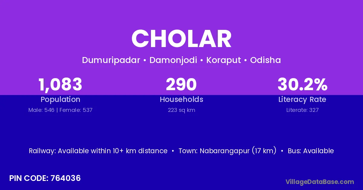 Singrauli (110 km) is the nearest town to Cholar village for major economic activities and is located approximately 110 km away.