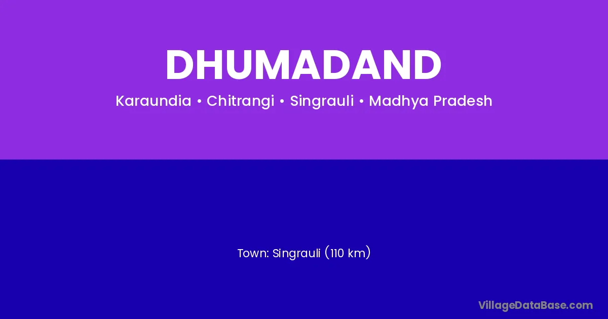 Singrauli (110 km) is the nearest town to Dhumadand village for major economic activities and is located approximately 110 km away.