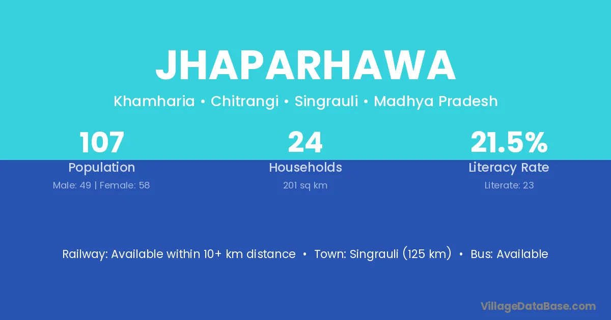 Jhaparhawa village has a total population of 107 people, of which 49 are males and 58 are females.