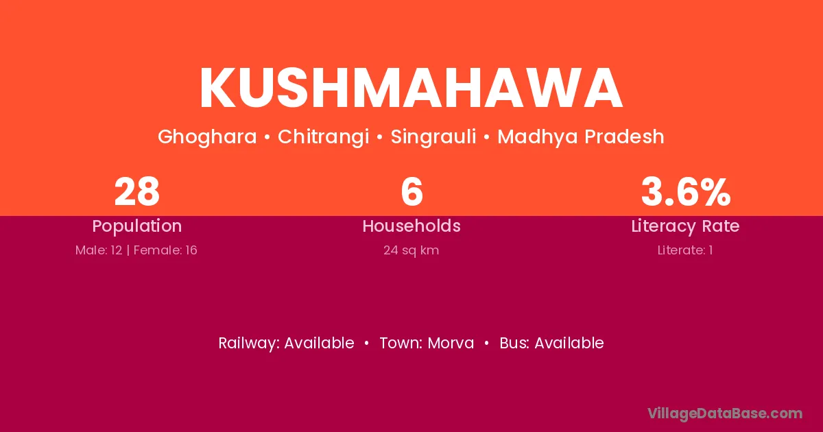 Kushmahawa village has a total population of 28 people, of which 12 are males and 16 are females.
