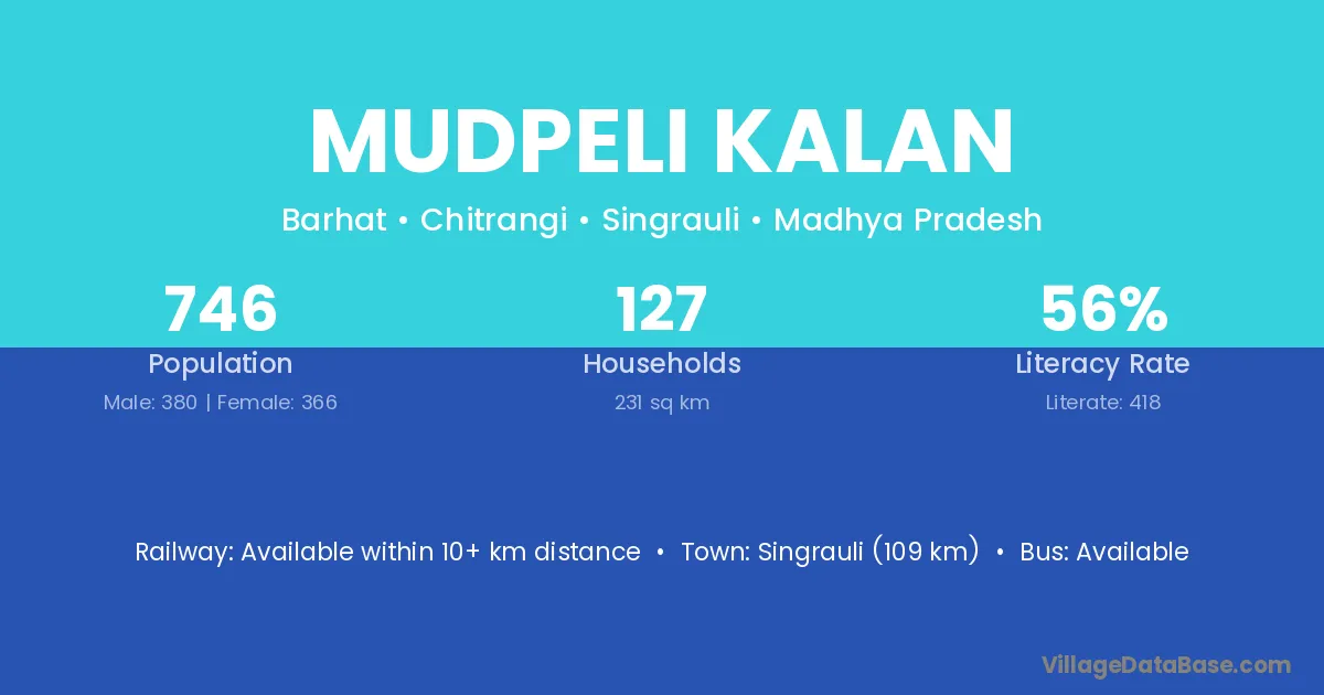 Mudpeli Kalan village has a total population of 746 people, of which 380 are males and 366 are females.