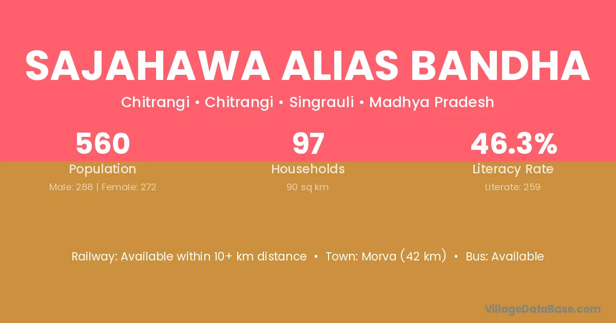 Sajahawa Alias Bandha village has a total population of 560 people, of which 288 are males and 272 are females.