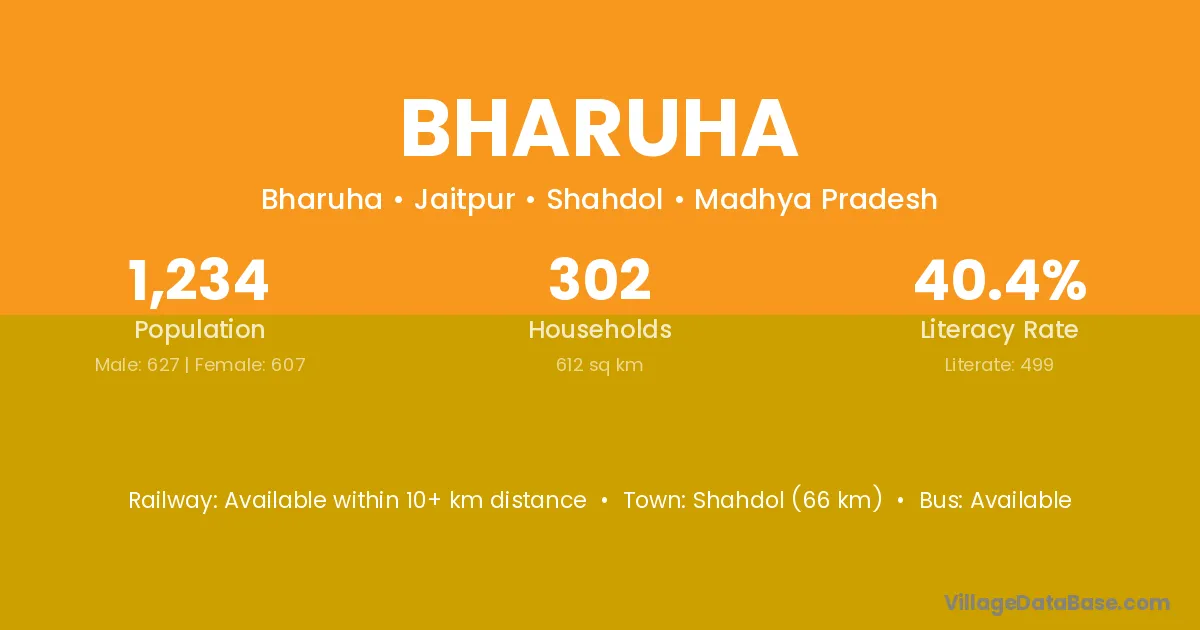Singrauli (50 km) is the nearest town to Bharuha village for major economic activities and is located approximately 50 km away.