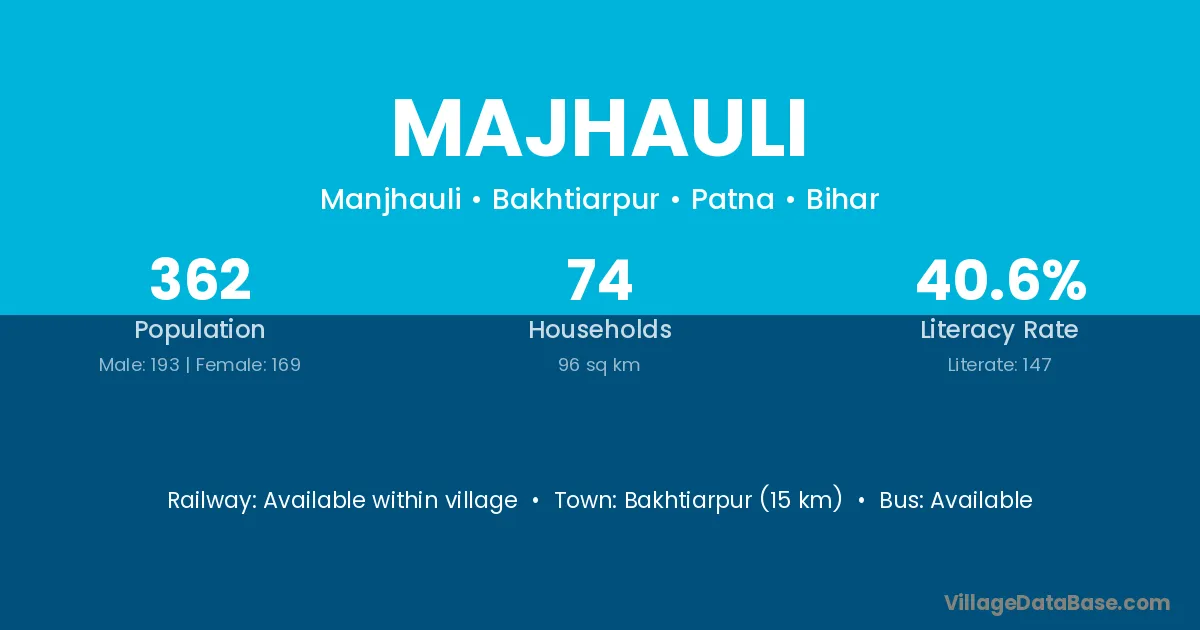 The literacy rate of Majhauli village is 62.21%. Male literacy stands at 75.20% and female literacy at 45.48%.