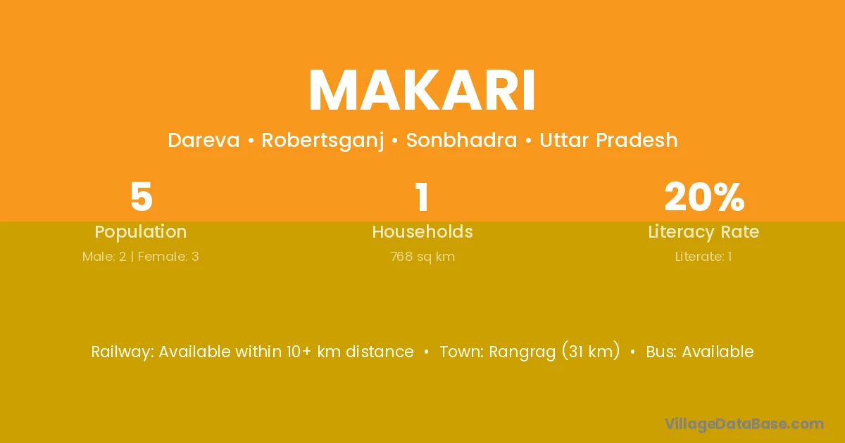 Singrauli (50 km) is the nearest town to Makari village for major economic activities and is located approximately 50 km away.