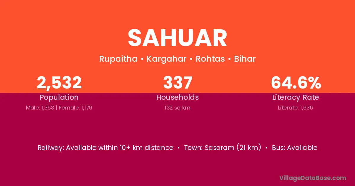 The literacy rate of Sahuar village is 48.84%. Male literacy stands at 57.91% and female literacy at 39.47%.
