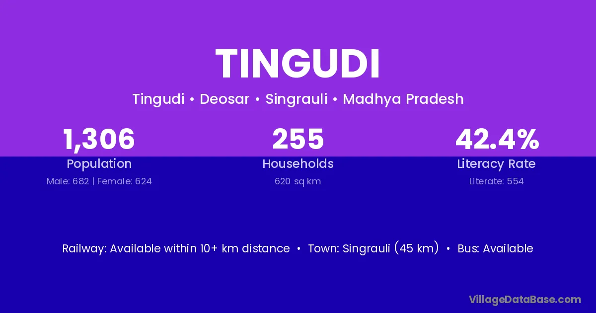Singrauli (45 km) is the nearest town to Tingudi village for major economic activities and is located approximately 45 km away.