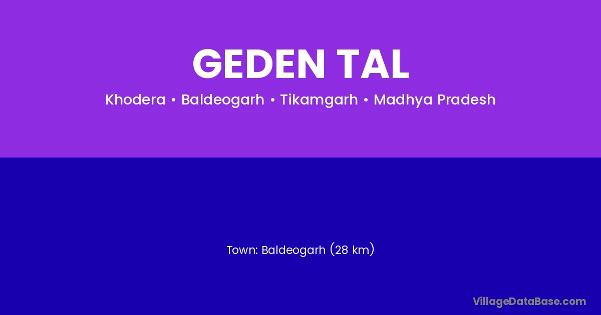 Baldeogarh (28 km) is the nearest town to Geden Tal village for major economic activities and is located approximately 28 km away.