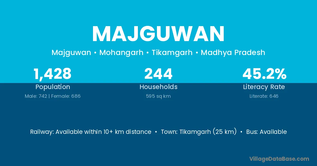 Baldeogarh (20 km) is the nearest town to Majguwan village for major economic activities and is located approximately 20 km away.
