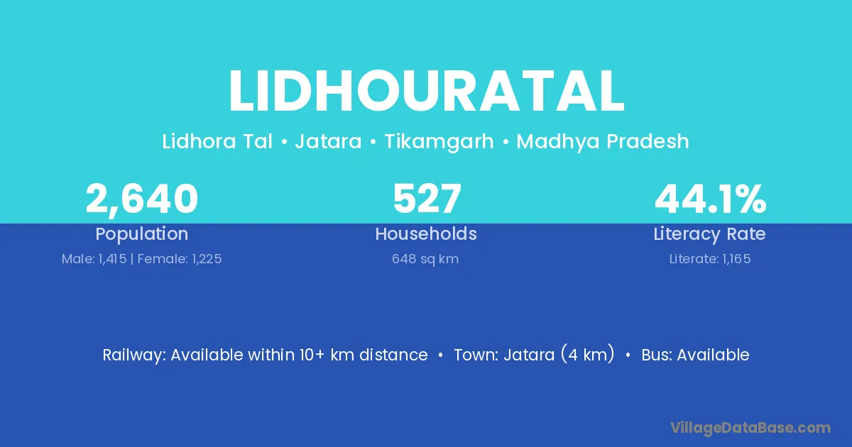 Jatara (4 km) is the nearest town to Lidhouratal village for major economic activities and is located approximately 4 km away.