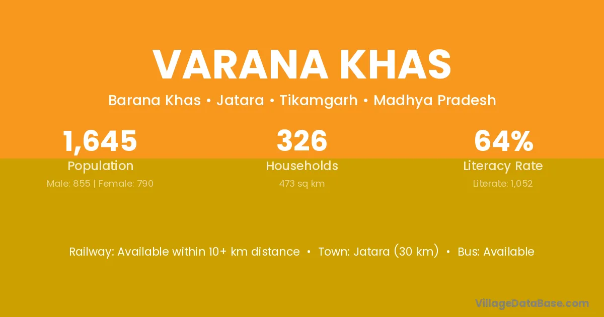 Varana Khas village has a total population of 1,645 people, of which 855 are males and 790 are females.
