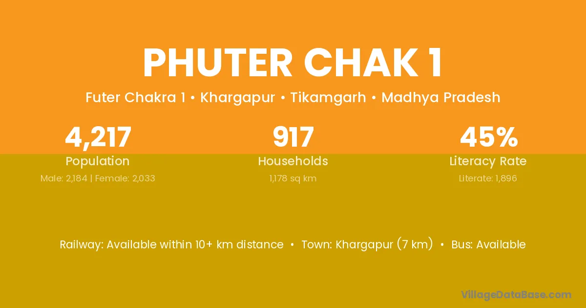 Khargapur (7 km) is the nearest town to Phuter Chak 1 village for major economic activities and is located approximately 7 km away.