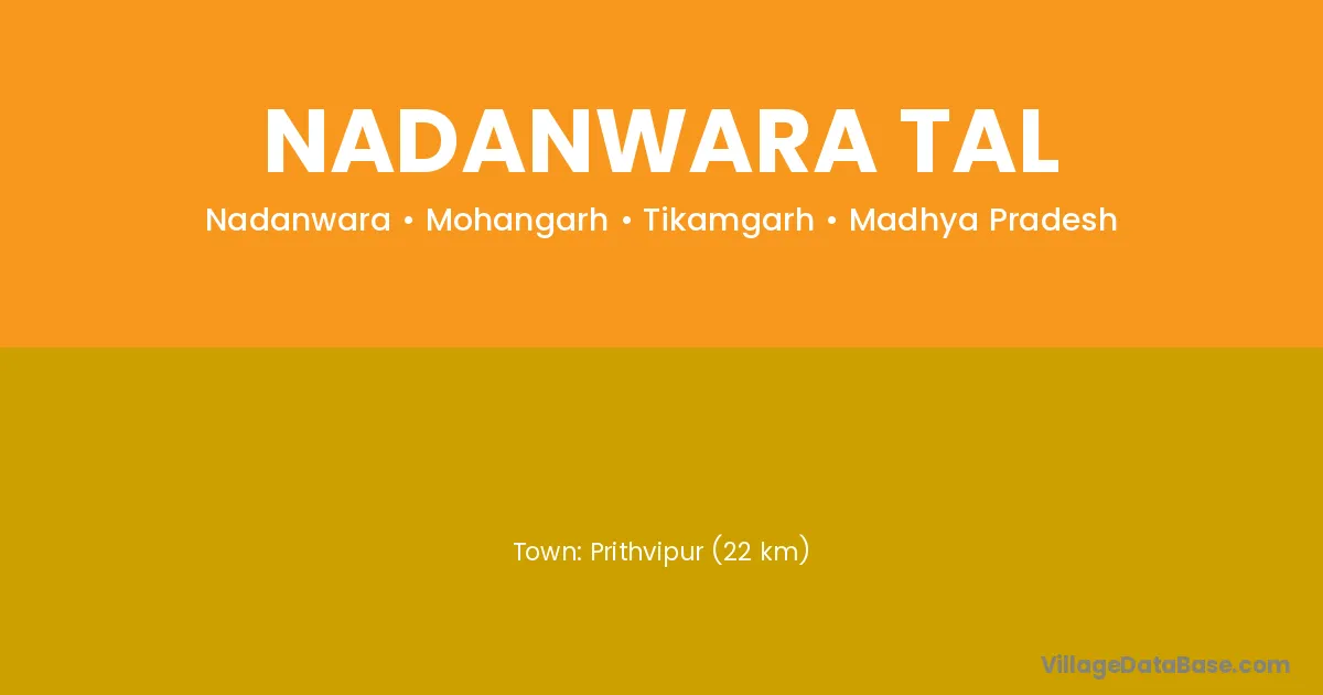 Prithvipur (22 km) is the nearest town to Nadanwara Tal village for major economic activities and is located approximately 22 km away.