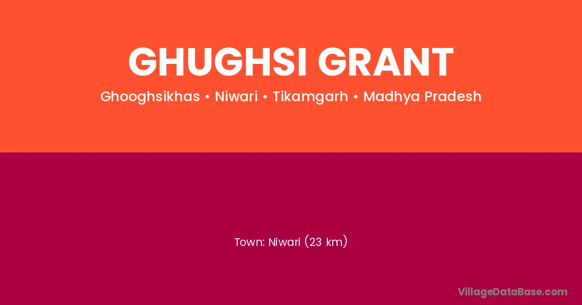 Niwari (23 km) is the nearest town to Ghughsi Grant village for major economic activities and is located approximately 23 km away.