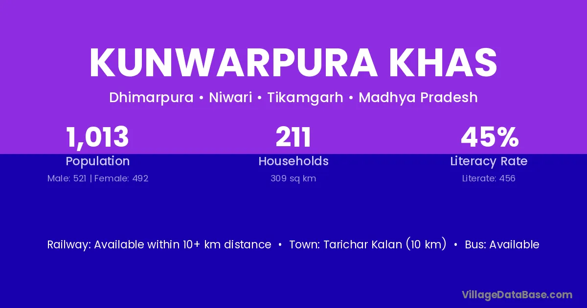 Kunwarpura Khas village has a total population of 1,013 people, of which 521 are males and 492 are females.