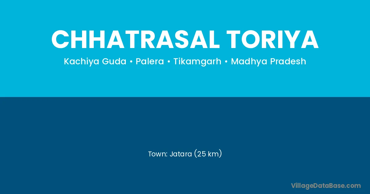 Jatara (25 km) is the nearest town to Chhatrasal Toriya village for major economic activities and is located approximately 25 km away.
