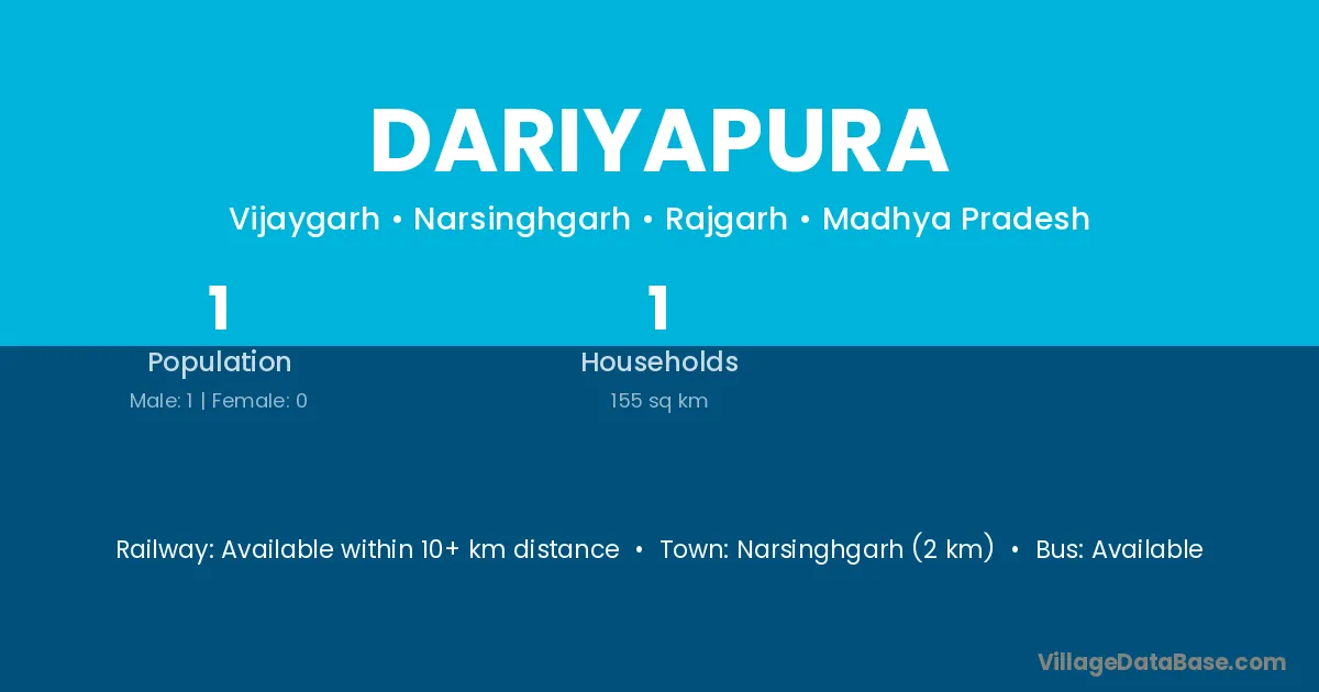 Lidhora Khas (18 km) is the nearest town to Dariyapura village for major economic activities and is located approximately 18 km away.