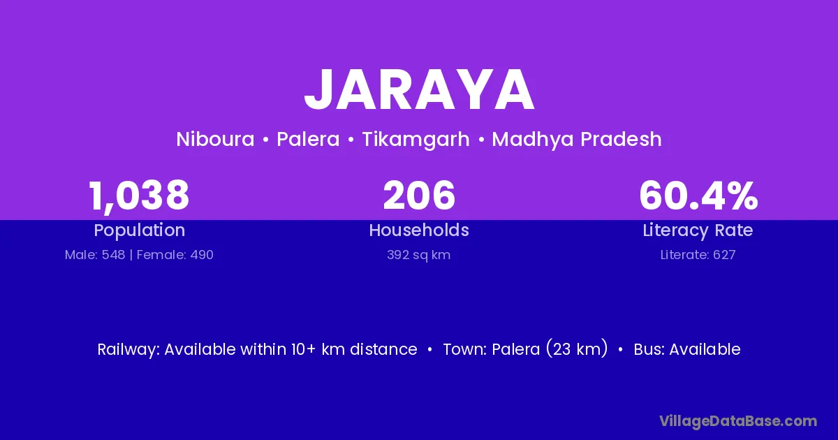 Jaraya village has a total population of 1,038 people, of which 548 are males and 490 are females.