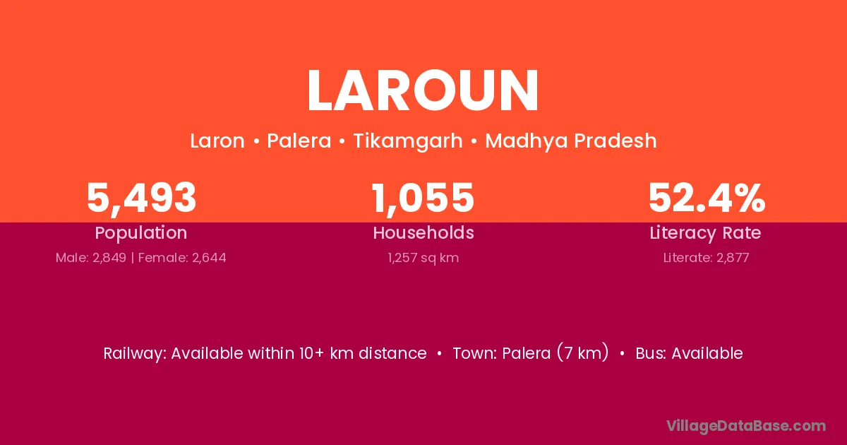 Palera (7 km) is the nearest town to Laroun village for major economic activities and is located approximately 7 km away.