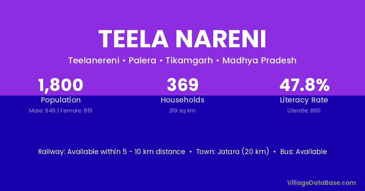 Jatara (20 km) is the nearest town to Teela Nareni village for major economic activities and is located approximately 20 km away.