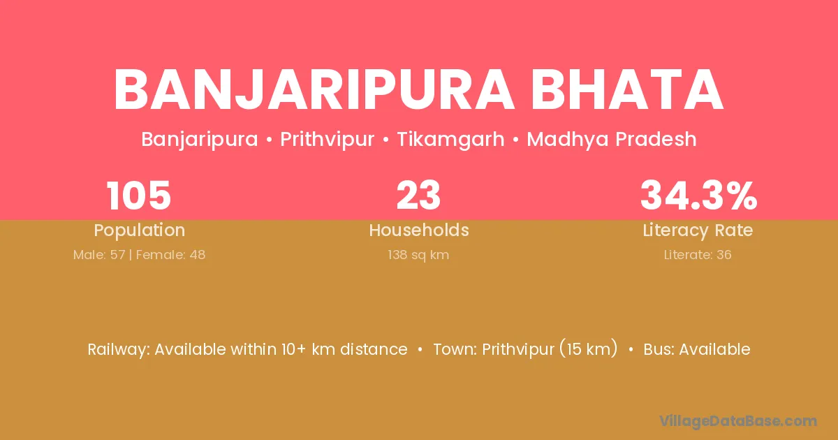 Banjaripura Bhata village has a total population of 105 people, of which 57 are males and 48 are females.