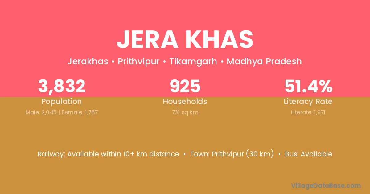 Prithvipur (30 km) is the nearest town to Jera Khas village for major economic activities and is located approximately 30 km away.