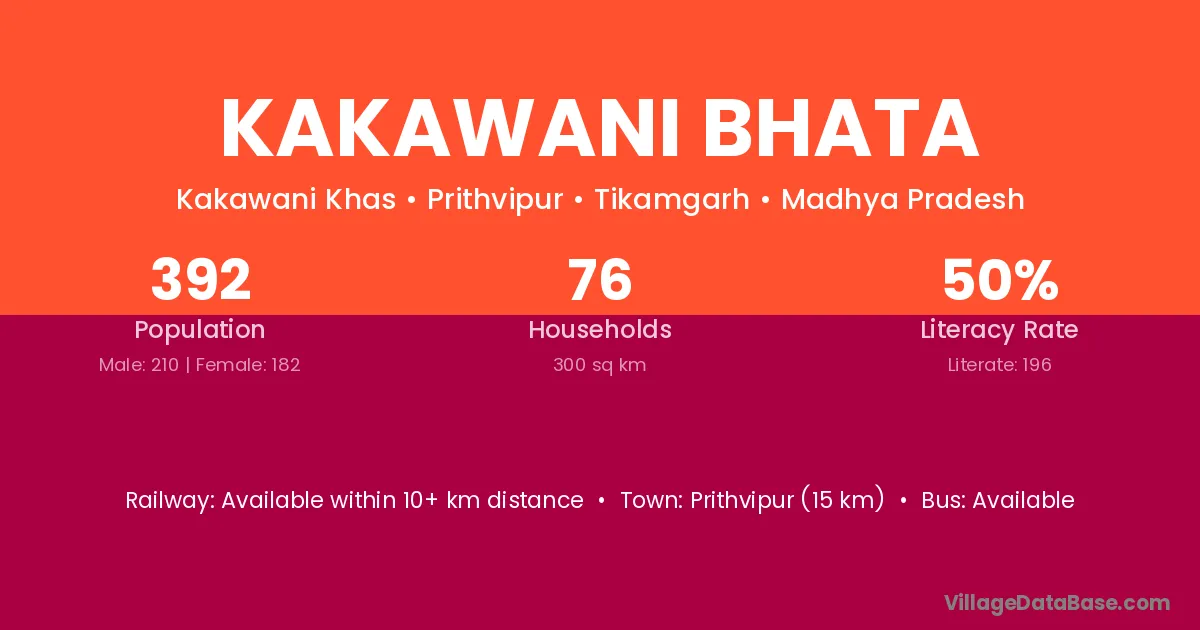 Kakawani Bhata village has a total population of 392 people, of which 210 are males and 182 are females.