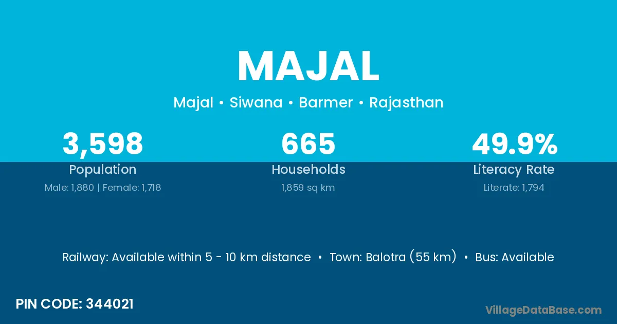 Prithvipur (13 km) is the nearest town to Majal village for major economic activities and is located approximately 13 km away.